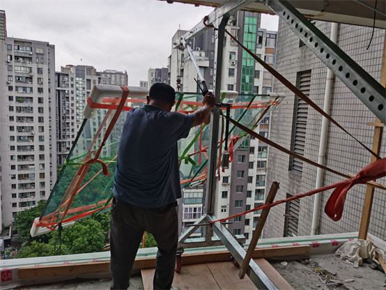 經本公司專業人員現場勘查,貴公司業務人員指定吊裝位置,物品為吊裝玻璃,重量為50公斤左右、長度5.5米、施工地址:金鐘廣場22樓平臺,實現上述目的,吊裝機(電葫蘆)一種高樓高空吊裝動力裝置,為了安全保障期間機器用保險繩綁扎機器設備安裝22層固定施工,不打任何眼、不破壞任何物品墻體,螺旋絲桿所固定,機器支架和吊裝桿臂連接機構,所述動力機構220V300瓦電機減速機,電機通過減速機驅動繩筒;統稱為卷揚機。所述支架包括鏈接桿、頂桿和圓桿伸縮臂,設置在卷揚機底座上,通過卷揚機相連,下端還裝置松緊調節,經過檢查物體重量測試合格后安全操作、吊裝施工為專業吊裝工人為3人,每次依維柯1輛,扎帶4根、吊帶2根、固定利用,對講機、安全帽、警戒線、安全帶及工具等。施工下面用繩攬牽拉2根繩2位工人,如風量增大嚴禁吊裝。吊裝必須包裝及防護才能操作;貴公司業務人員指定樓層平臺所保護,應綁扎平衡、牢固,扎帶綁帶下面懸掛所保護,保證外墻無損壞現象,確保物品安全施工吊裝,專業吊裝作業人員,包括司機、卷揚機、信號指揮、吊裝工等均應屬特種作業人員,必須是統一安排統一指揮。